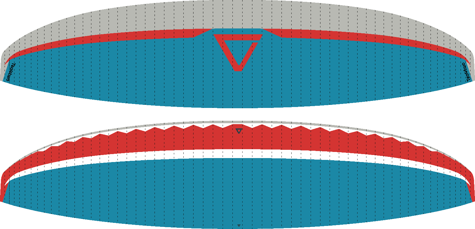 Stepped diameters of lines – along the span and along the rows they reduce aerodynamic drag and wing weight while maintaining its maximal load capacity and robustness.